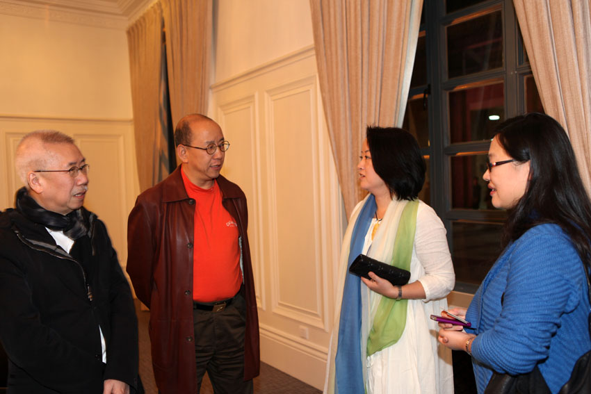 刘春红副校长与著名设计大师靳埭强(左一)交谈