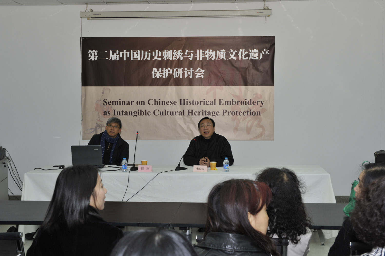 2013年4月21日,在我校第三教学楼八楼会议厅,举办了《针尖上的书画》为主题的活动的开幕式,赵丰老师及包老师对于刺绣及非物质文化做了相关的报告。