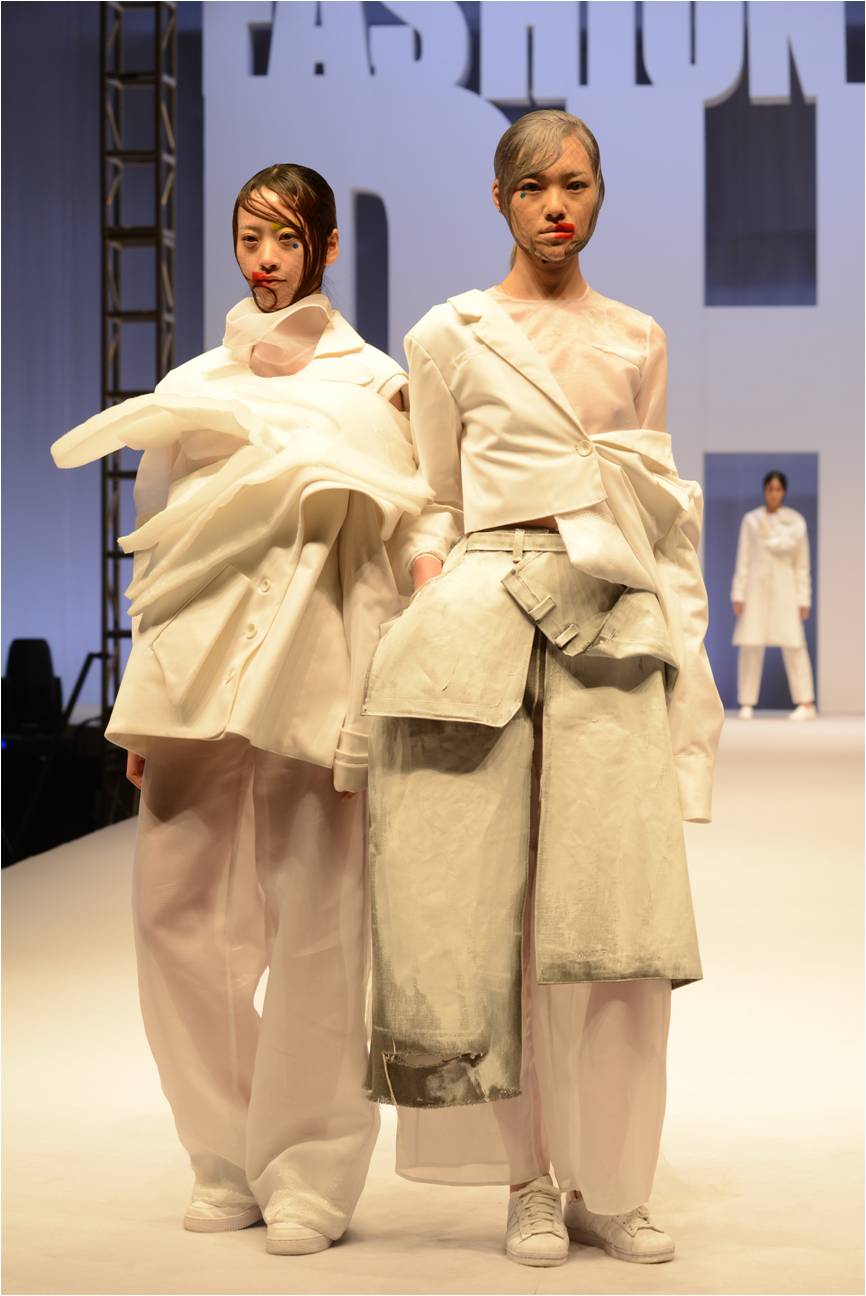 不同的风格、不同的视角、不同的材质,却是同样的精彩!台湾的极地长征、本草纲目或者雨衣系列,中日的立裁、廓形或者对材料的运用,相信都会对我们的学生有极大的感染力和影响,让两所学校在交流中学习,在包容中进步。
