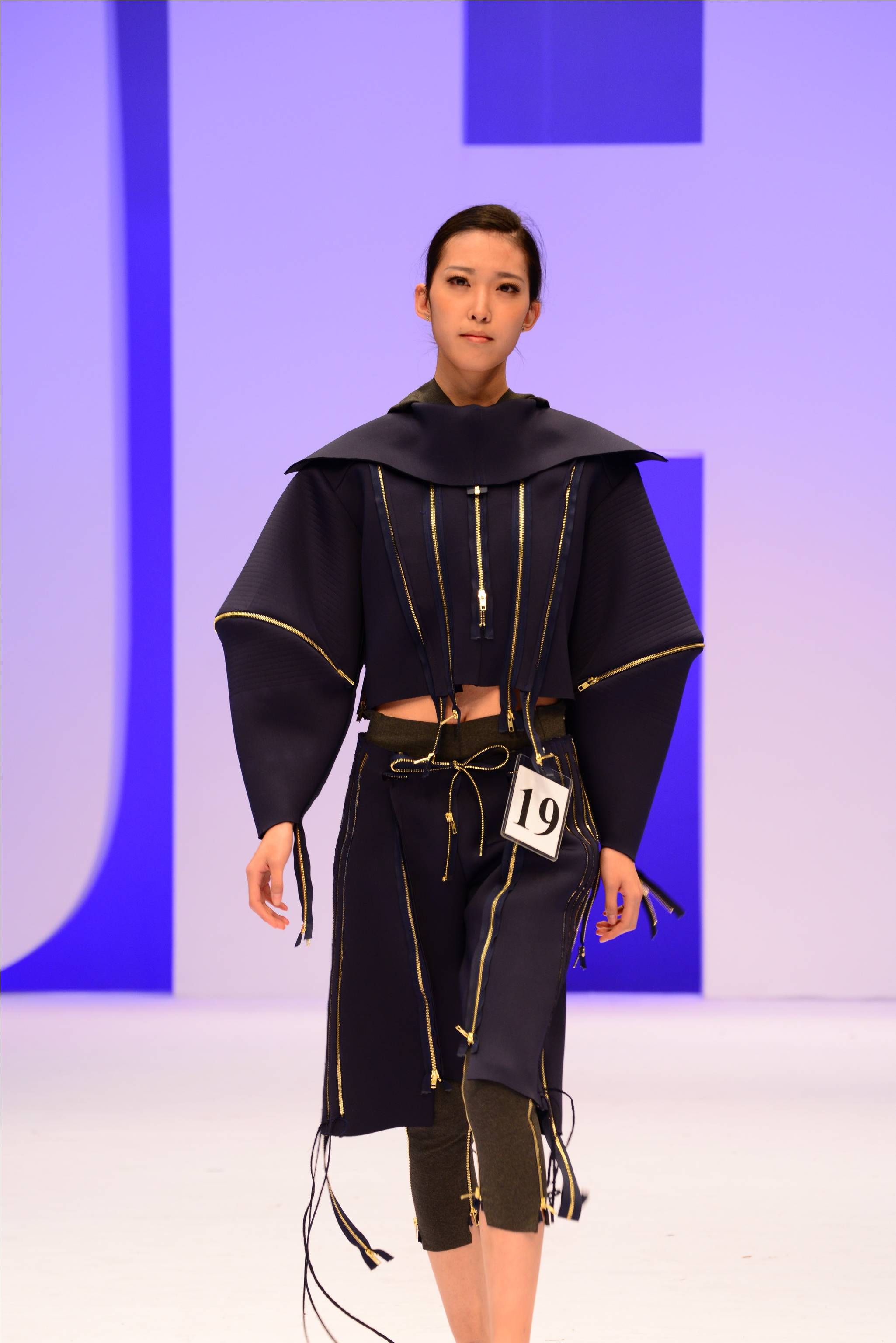 本次比赛中,选手们采用明亮的色彩,运用金属拉链的排列组合制作出未来感十足的造型。