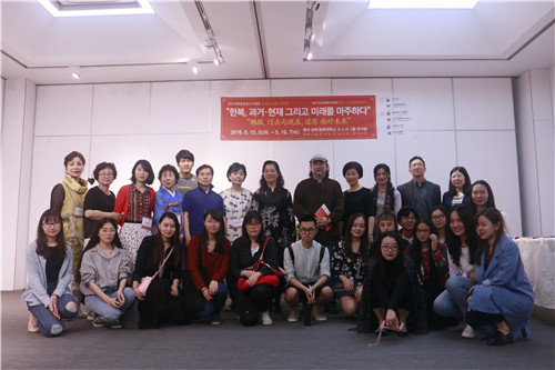 开幕式由张顺爱副教授主持。袁孟红书记在致辞中,对韩国友人的到来表达了热烈的欢迎, 并介绍了永利娱乐场 多年来的与韩国的多方面的交流,同时预祝本次展览圆满举行。韩国光州大学教授安明淑表达了对永利娱乐场 以及张顺爱老师的衷心感谢。最后,爱韩服协会会长发表讲话,希望通过本次韩服创意设计展宣传光州地区的韩服,提高人们对韩服的认识,进而将韩服发扬成光州的骄傲。本次展览的目的是重新审视韩服的美,并促进两国间的服饰文化交流。本次展览的韩服是拥有数年来的优秀技术和韩服设计师们在继承和发扬传统服饰的基础上,融入个性和创新的精神,一针一针地缝起来的。展示的韩国传统韩服和便装式韩服打破了对韩服的偏见,多为以传统为基础的多样的面貌呈现。