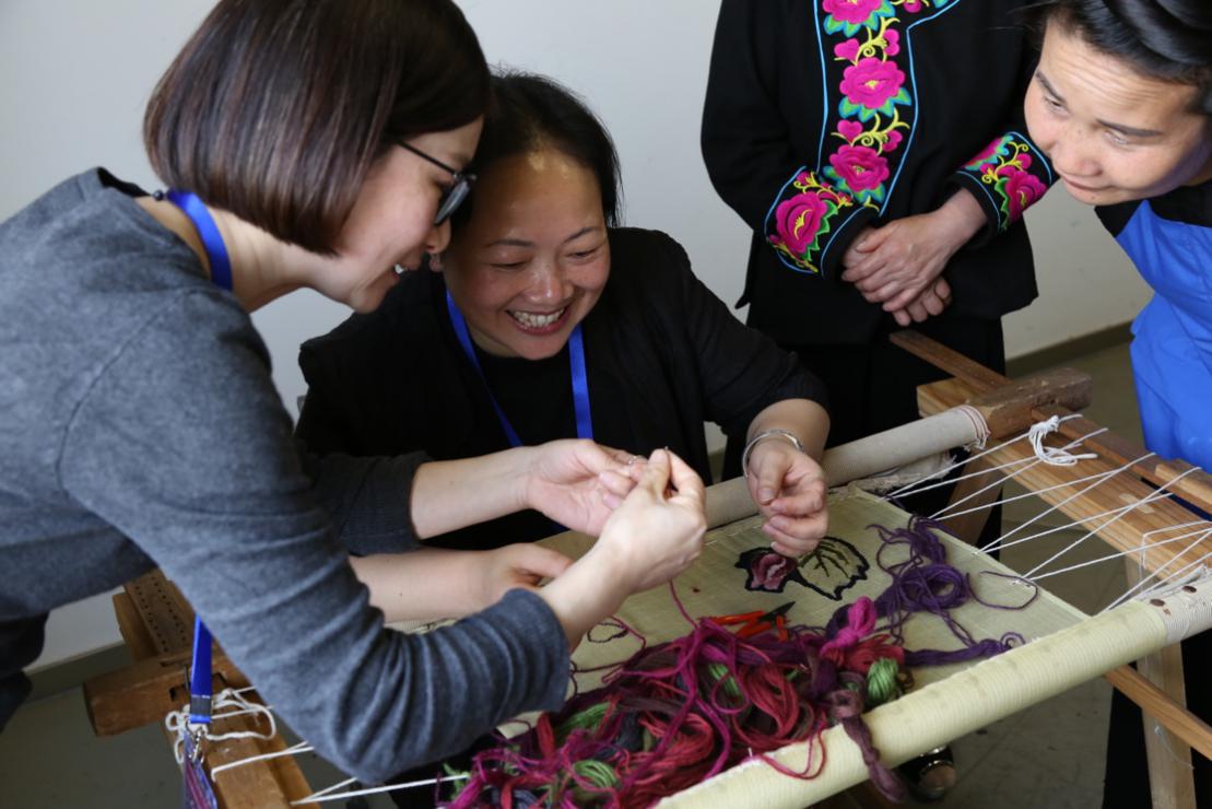 传承人中也有年轻的绣娘,石庆兰是刚刚大学毕业的学生,大学本科专业的是民族工艺品方面的研究,大学期间创业,自产自销,通过互联网宣传自己的刺绣产品和民族刺绣文化。她表示今天孙老师的课程让她受益匪浅,她曾一度对民族刺绣未来行业走向产生了困顿,跟孙老师讨论之后,决定要把非遗路十年如一日地坚守和走下去,继承发扬本民族的传统技艺。