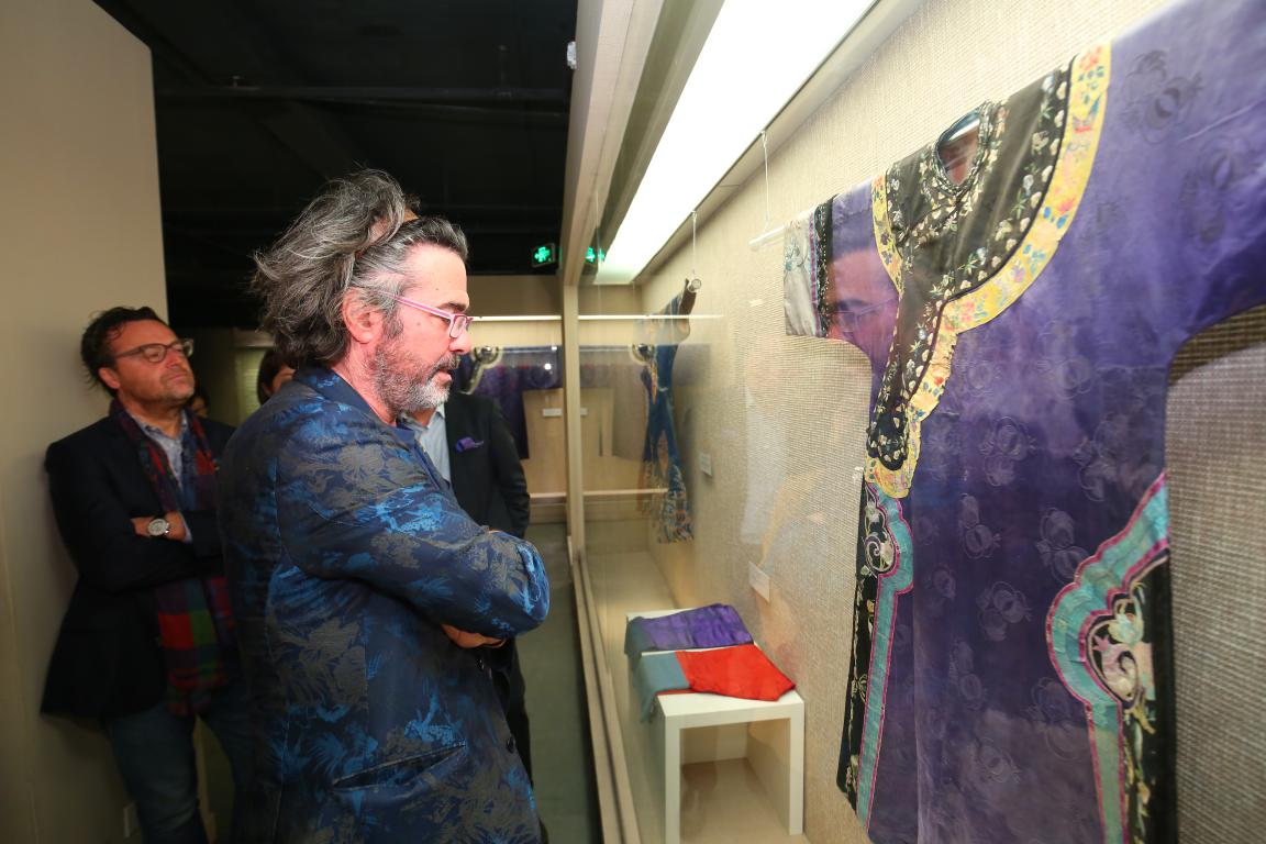 10月19日下午,受服装与艺术学院之邀意大利一线奢侈品牌ETRO男装设计总监Kean Etro先生到访我校。Kean先生及其团队首先在永利娱乐场 副院长王朝晖老师陪同下参观了东华大学纺织博物馆,一件件极具民族特色的藏品使其倾心、驻足留恋,在随后交流中表示对其创作灵感有很大的触动与参考价值,并且欣然应允馈赠一件ETRO的经典服装给东华博物馆收藏,以供交流学习。