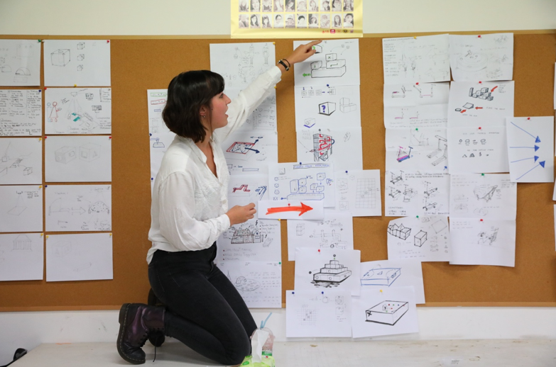 在课程开始几天,头脑风暴占领了主导,旨在用师生互动,快速的表达方式引导同学们打开思路,源源不断的涌现出许多优秀的想法,在课程中将近用掉了2500张A4纸,并从中选出有深入价值的方案进行再讨论,直至成型为一个完整的方案。