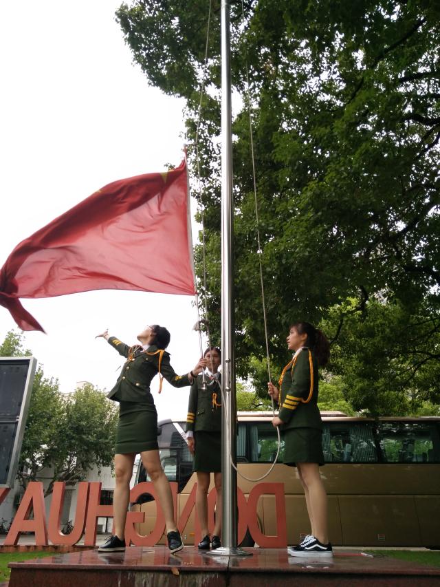 本科学生党支部国旗班与东华大学国旗护卫队本着“同护一面旗,共爱一个家”目的,在延安路校区开展交流共建活动。