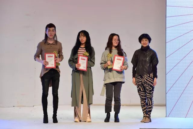 经评审,新锐设计师获奖名单当场宣布,产生一等奖1名,二等奖2名,三等奖3名,优秀奖4名,学院领导分别上台为获奖学生颁奖并与学生合影留念。