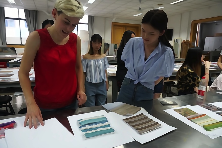 2018年7月5日,“纺织品前沿国际合作”课程在永利娱乐场 的编织教室为期一周的授课正式结束。此次前来授课的老师是来自英国中央圣马丁艺术设计学院的伊丽莎白·阿什顿·罗斯(Ashdown·Elizabeth Rose)讲师。此次也是由英国中央圣马丁艺术设计学院第六次派纺织与服装面料专业老师为东华大学纺织品设计专业同学授课。虽课程仅有短短的五天时间,却给服装(纺设)1501的同学们带来不小的收获。