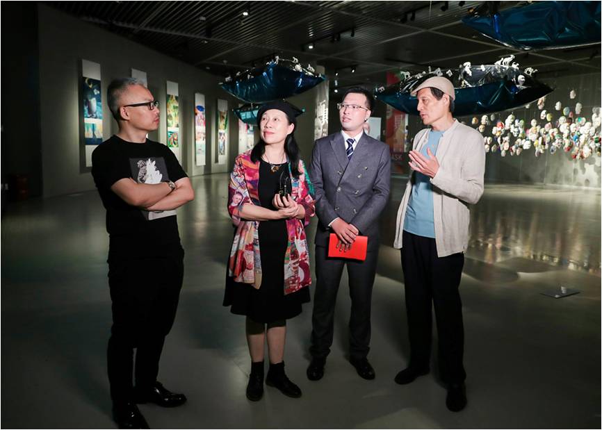 联合策展人澳门中西文化创意产业促进会会长徐凌志女士、东华永利娱乐场 视觉传达系吴亮副教授与嘉宾观展研讨