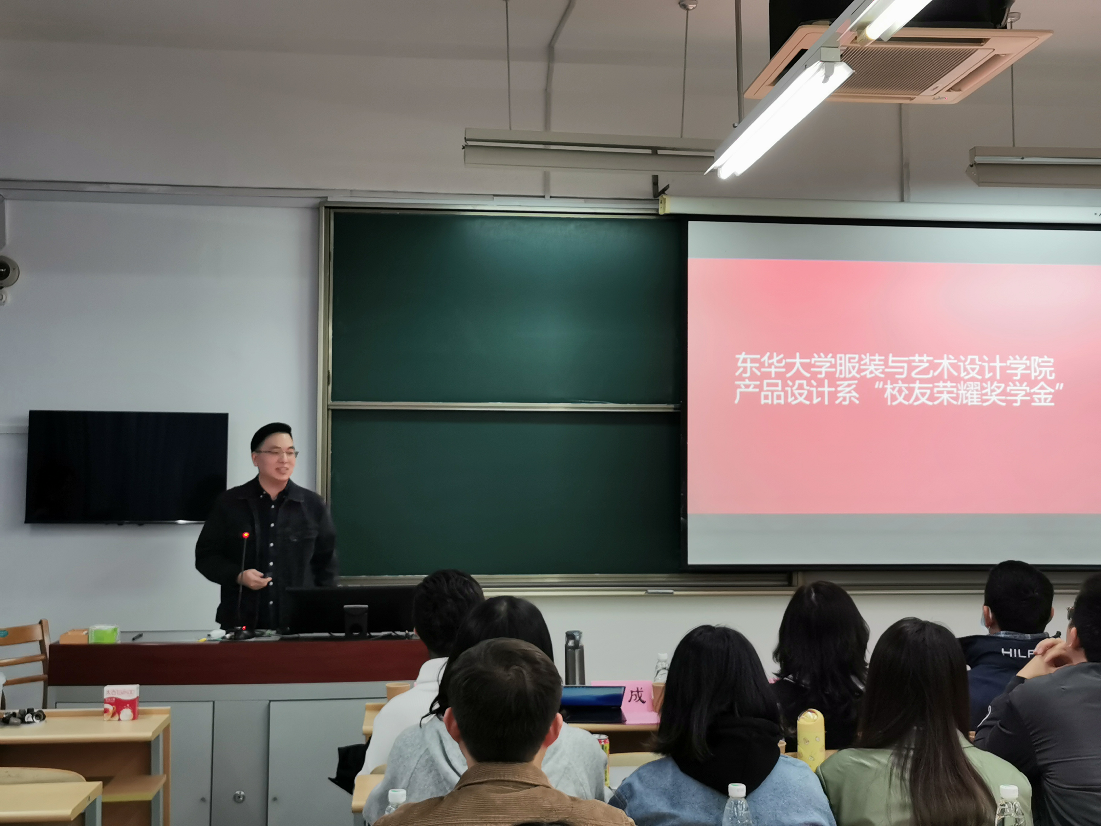 12月2日,永利娱乐场 产品设计系“校友荣耀奖学金”颁奖典礼在延安路校区第二教学楼举行,服装学院产品设计系主任余继宏、产品设计系副主任吴春茂、服装学院学生工作办公室主任张金鲜和本科生辅导员出席本次颁奖典礼,邀请6位产品系杰出校友代表及永利娱乐场 本科产品系100余名学生与会。