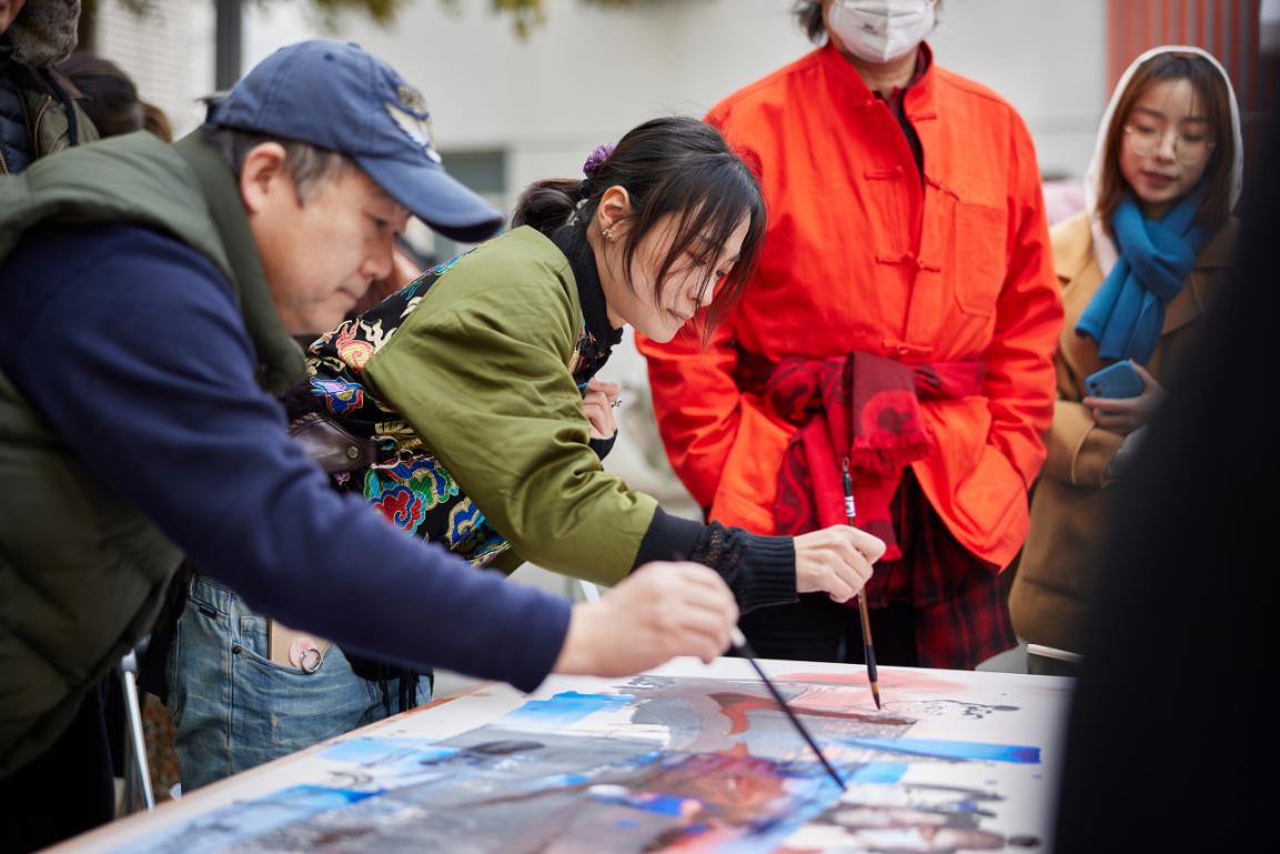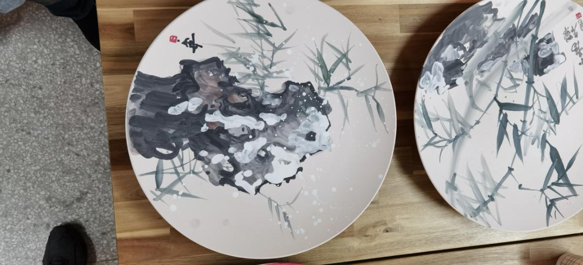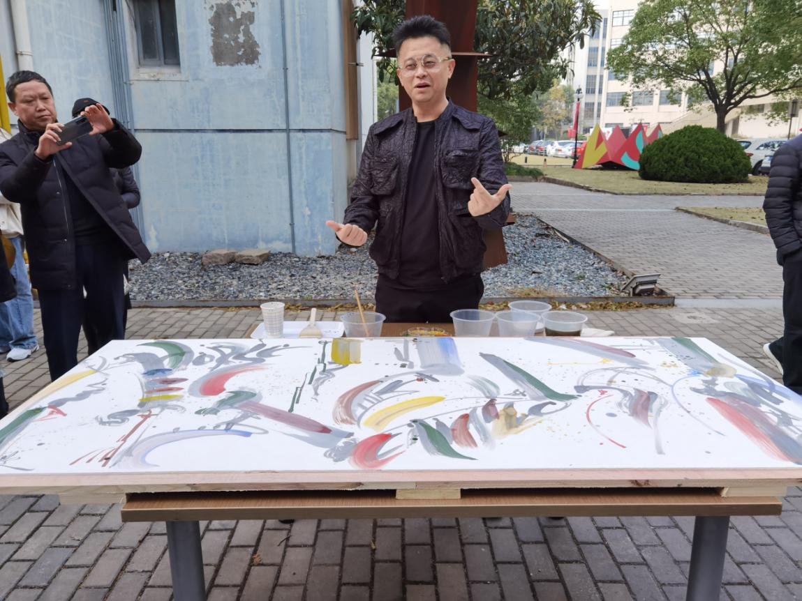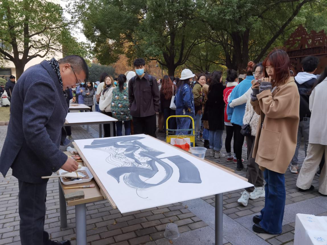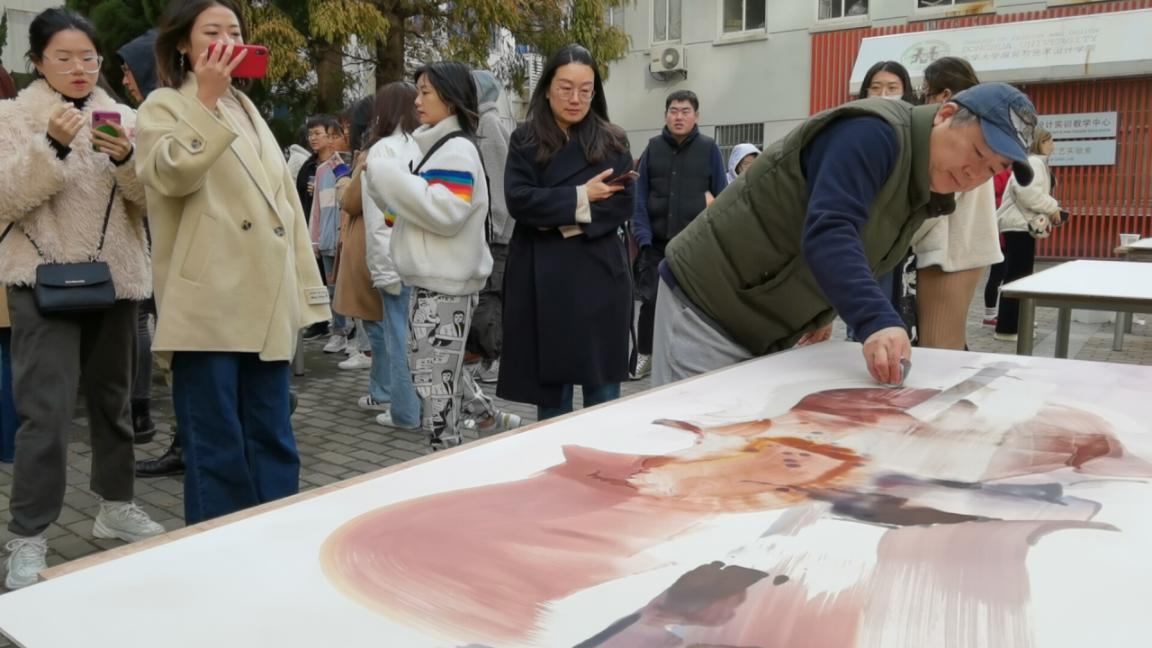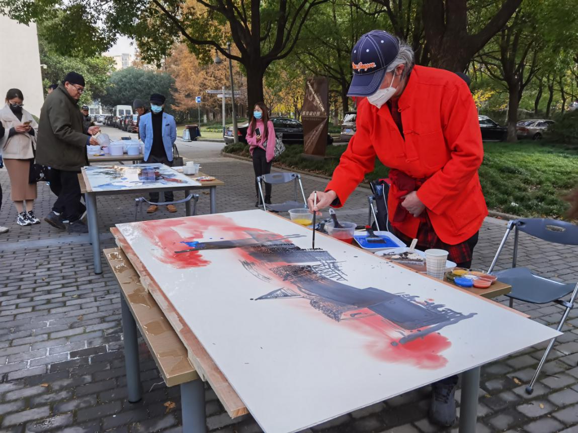 据《艺术与工艺》公开课组织教师赵强副教授介绍,通过邀请艺术家与学生共同参与课程创作,不仅为课程增添了创作方式多样性与元素表达丰富性,更有助于学生通过观摩大师运用不同材料、工艺技术进行创作,提升自我创作技能和艺术修养,也为后续的艺术创作做好基础性铺垫和提升创作自信心。在活动现场,艺术大师们与东华学生们创作激情高涨,共同执笔创作个性作品与艺术才情,完全不惧初冬丝丝寒意。师生们在现场创作的作品形式多样,包含巨幅陶瓷水彩作品和陶瓷圆盘青花作品,内容涉及抽象艺术、建筑表现、花卉与动物表现等多种元素。