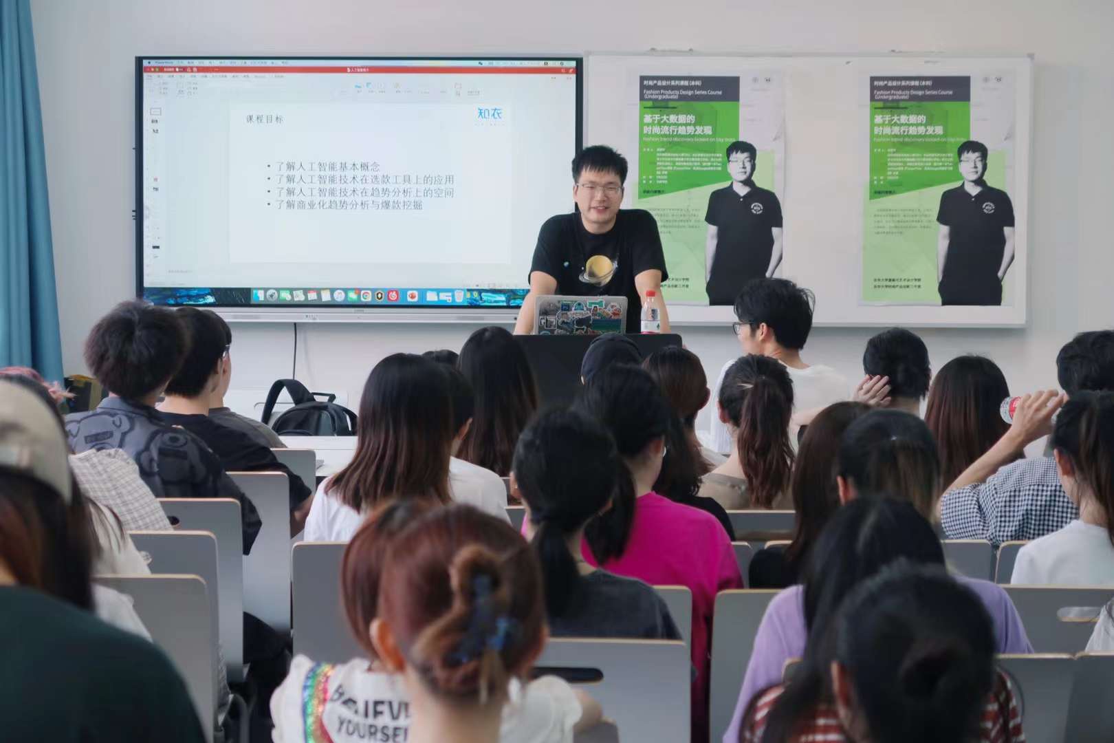 9月22日下午,在东华大学延安西路校区化工楼301,永利娱乐场 邀请永利娱乐场 研究生校外导师,知衣科技联合创始人兼CEO——郑泽宇先生为学院师生讲解如何通过大数据+AI的数字化模式,解决时尚趋势挖掘,数据选款,设计成本降低等难题。