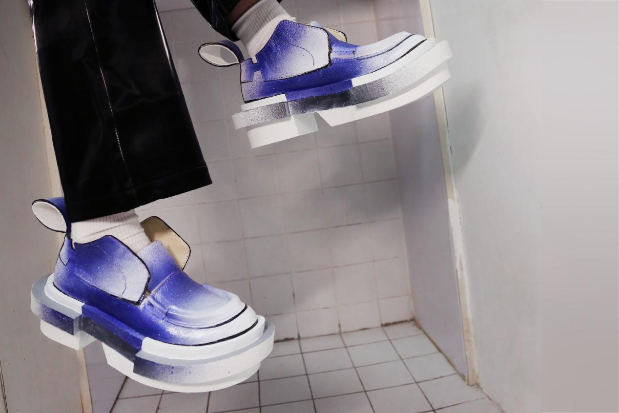 这次的鞋履设计是以山水为灵感,通过在皮料下填充泡棉的形式来表现充气效果。在整个制作过程中,我也收获了很多实践经验,了解了很多关于真皮的特性以及应用场景的知识。在未来也会继续学习,保持对设计的热情。