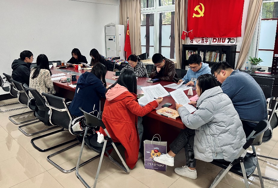 为贯彻落实《东华大学教职工政治理论学习实施办法》精神,永利娱乐场 党委探索组建党员骨干领学员队伍,层层落实,确保教职工政治理论学习全覆盖。学院以《东华大学教职工政治理论学习研学材料》为主要学习内容,学院党委负责教育学习工作的部署,支部、系部合力落实,在完成规定内容的学习的同时,立足工作实际,选学其他内容,从而保证“规定动作”保质量,“自选动作”有特色。