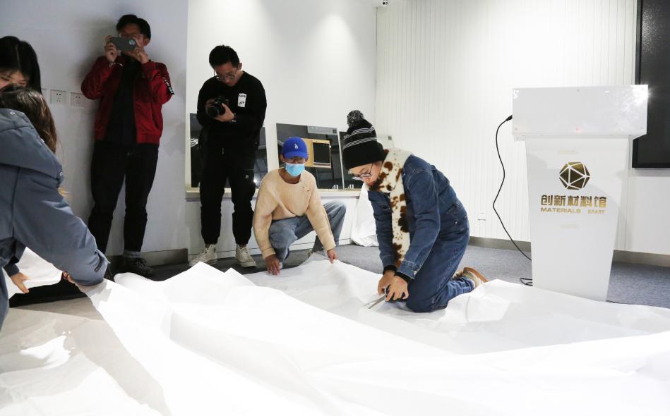 本次“杜邦零废计划”设计工作坊由上海创新材料馆与东华大学产品设计系课程联合推出的校外系列活动。馆内汇集全球知名企业的创新材料,集聚陈列了10000+可触摸的新型材料,让同学们可以近距离的感受到最前沿、新型的功能性材料,以此展开相关思考。活动当天,为了让同学们对杜邦™ Tyvek®材料有一个初步的认识,何馆长通过对创意、成熟的杜邦材料设计案例进行知识讲解,让在座师生一起了解材料的特性、发展现状及应用背景。