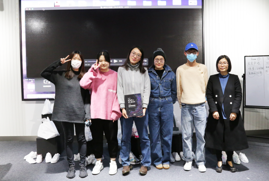 结合《鞋履设计与工艺》课程内容,田老师带领同学们共同探究如何运用杜邦™ Tyvek®材料实现一双鞋的制作,同时以团队共创为命题,针对材料特性、设计与应用手法三方面进行头脑风暴。各团队提取关键词,展开有针对性的材料设计运用,结合Tyvek®材料轻薄、强韧耐撕的特性进行重新思考“再设计”。在限时2小时的共创设计制作中,五组同学都拿出了让人耳目一新的产品和设计概念,最后何馆长在各组限时1分钟精彩的设计汇报中,从设计理念、设计构造、制作工艺等方面评选出最佳设计奖、最佳团队奖及最佳创意奖三项奖项以资鼓励。