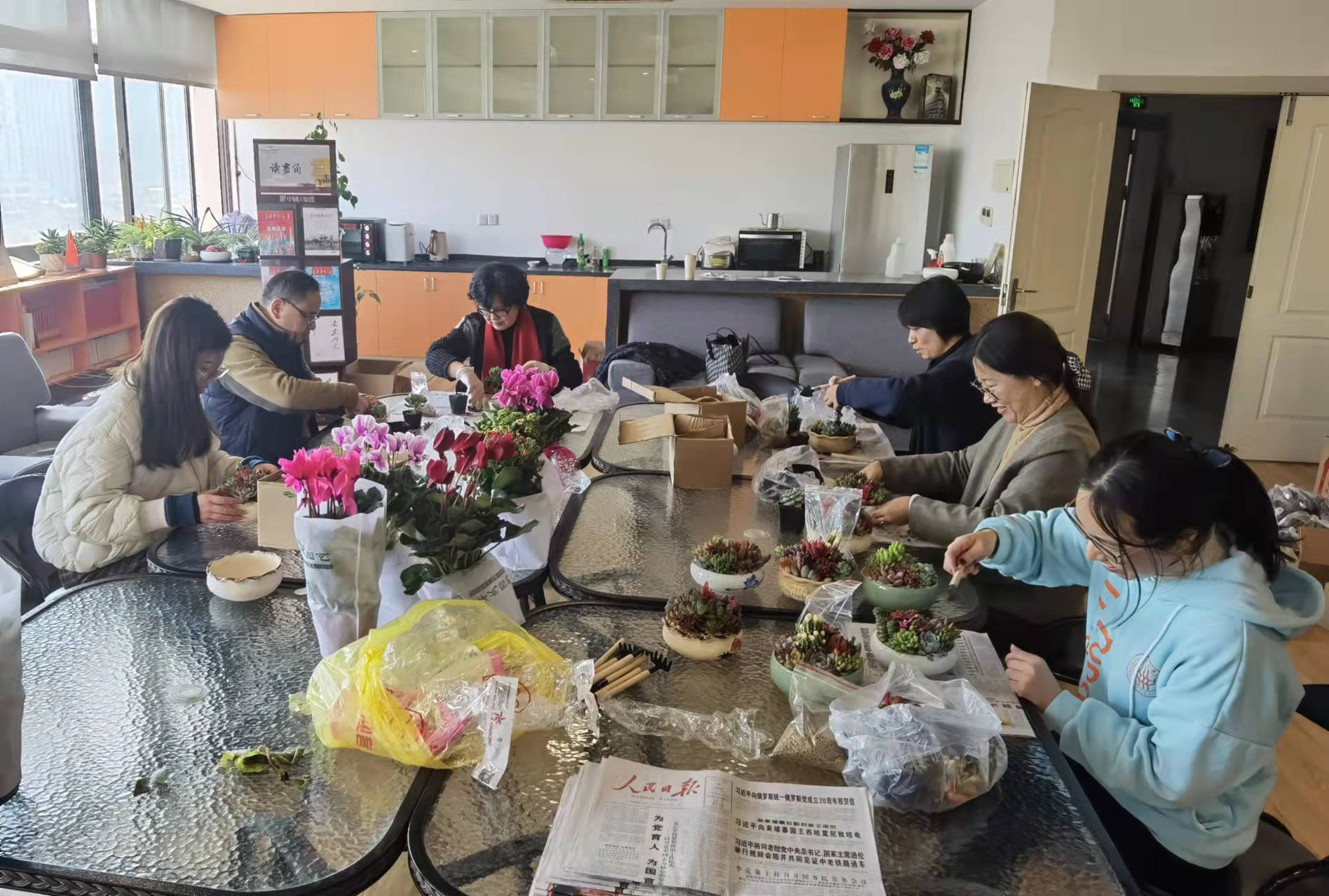 本次工会活动专门为全院教职工准备了五彩斑斓的多肉盆栽和生机勃勃的绿植,同时老师们也可大显身手,亲自动手制作专属的多肉盆栽。活动吸引了很多教职工来到教工之家参与活动,铺沙、翻盆、造型、填土,老师们忙得的不亦乐乎,制作完成了不少佳作。