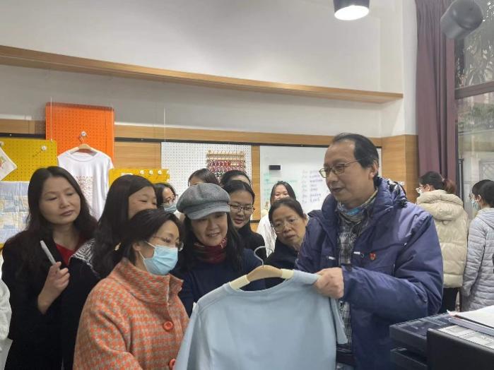 随后,蒋智威带领教师们参观了上海时尚科创中心实验室。与会人员围绕中心实验室、设立在上海国际时尚科创中心的上海汉服版权中心及后续的项目合作等展开了热烈的讨论。