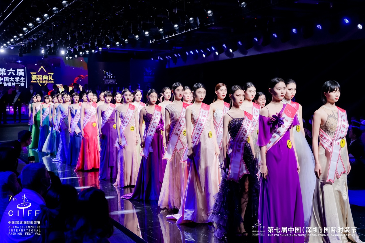2021年12月28-29日,第七届中国(深圳)国际时装节暨第六届中国大学生服装模特大赛在深圳市罗湖区水贝壹号盛大启幕。中国大学生服装模特大赛旨在让更多模特专业的大学生获得属于自己的崭露头角的舞台,为模特行业注入新鲜血液,让时尚模特的新生力量源源不绝。12月29日下午,在第六届中国大学生服装模特大赛现场,来自全国60几所院校的80余名大学生模特选手进行了泳装和时尚礼服的T台表演展示技巧现场比拼。