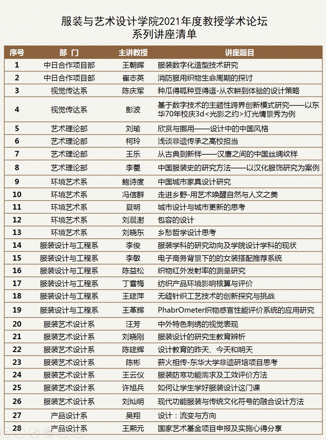 永利娱乐场 教授学术论坛自2020年9月开始实施以来,已组织学院所有教授完成17期共计28次学术讲座(讲座清单见下图),教师参与讲座600人次。教授学术论坛议题广泛,或分享近期的主要学术成就及重要学术成果、或交流对所在学科方向的学术思考及建议,或共享项目及科研(创作)过程中经验、方法等,为学院多个学科方向,不同年龄、职称结构的教师搭建了学术交流的平台。通过多角度、深层次的交流分享,进一步发挥学院教授在学科建设中间的重要作用,调动广大教师的学术积极性,推动队伍建设、人才培养、科学研究(及艺术创作)、社会服务(及文化传承)、国际合作等多方面工作的统一协调发展。2022年,教授学术论坛将继续开展,为学院师生继续提供学术交流分享的平台,助力美好学院发展!