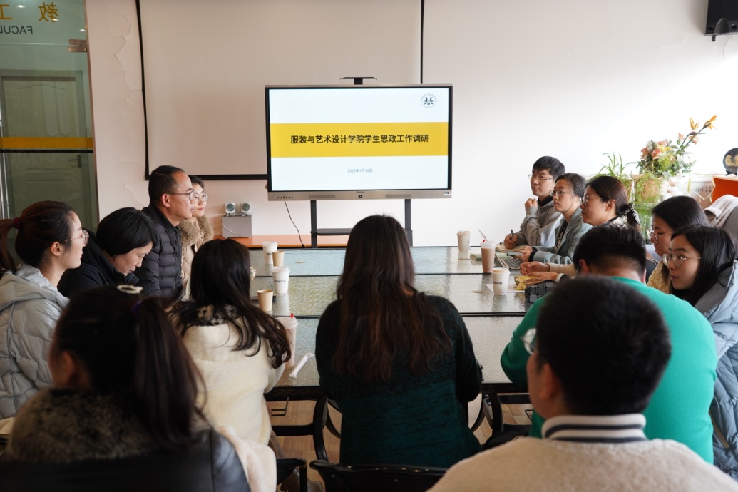 切实提升永利娱乐场 学生工作水平和服务质量,1月12日,永利娱乐场 2022年首次学生工作研讨会举行。东华大学学生处副处长赵彦明、学生处王肖、施春红、韩谨璐开展专项调研,学院党委副书记刘雯玮及服装学院全体专职辅导员出席会议。