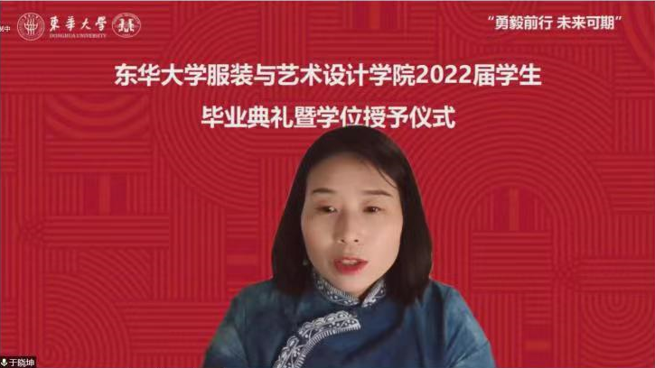 典礼在2022届本科毕业生毕设作品展示视频中拉开序幕。校党委书记刘承功宣读永利娱乐场 2022届上海市优秀毕业生、东华大学优秀毕业生表彰名单。校长俞建勇发表讲话,赞扬了毕业生们与学校共同面对疫情的昂扬奋进姿态,寄语毕业生保持青春朝气、踔厉奋发,带着东华给予的涵养、修为和品格,牢记时代使命和责任,勇敢去拼,放心追梦。