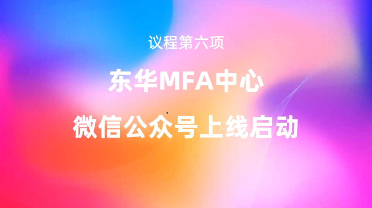 开学典礼上,同时启动了“东华MFA”微信公众号上线的仪式。陈庆军教授指出,在全媒体传播时代,微信公众号、小红书等自媒体平台建设,是增强东华MFA师生交流、产教融合、校企合作的平台,“东华MFA”微信公众号以资讯分享、师生成果展示、前沿探索等为主要板块,以主动、深度链接设计之都的都市文化艺术资源为基本态度推进自媒体建设,传播东华MFA的声音。