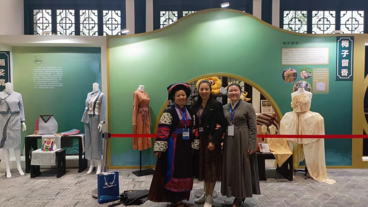 品牌持有人寄语:我先后两次赴东华大学参加非遗研修班,还在非遗研修班结业典礼上发言。通过两次在研修班的学习与交流,在产品的颜色、搭配和创新上收获很多。尤其是在手提包方面,我跟东华大学的研培老师学到了许多知识,在2021年设计的手提包系列荣获贵州第三届乡村旅游创客大赛超级创客组特等奖、最佳创意奖。另外在服饰方面,东华的老师给了我很多启发:可以将传统的刺绣、蜡染技艺与现代的水晶、亮片和羊毛等搭配,制作出兼具民族与时尚的服饰。东华大学非遗研修班不仅充实了我的理论知识和实践经验,开阔了视野,回到家乡后会将学到的知识分享给更多的人,带动周边百姓走上致富的道路,还被央视等多家媒体采访报道。