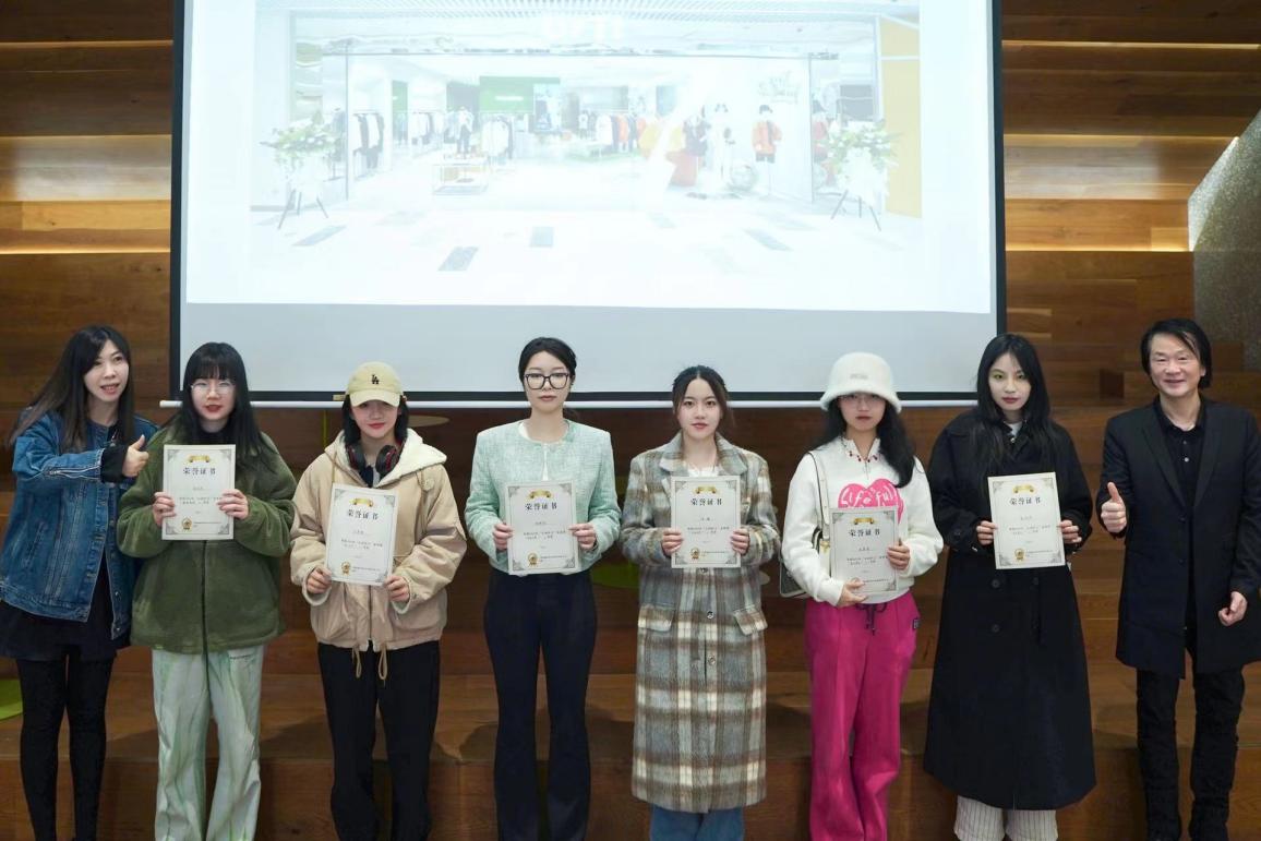 集团UT/I品牌设计总监郑光茜和永利娱乐场 副院长周洪雷为获三等奖同学颁奖