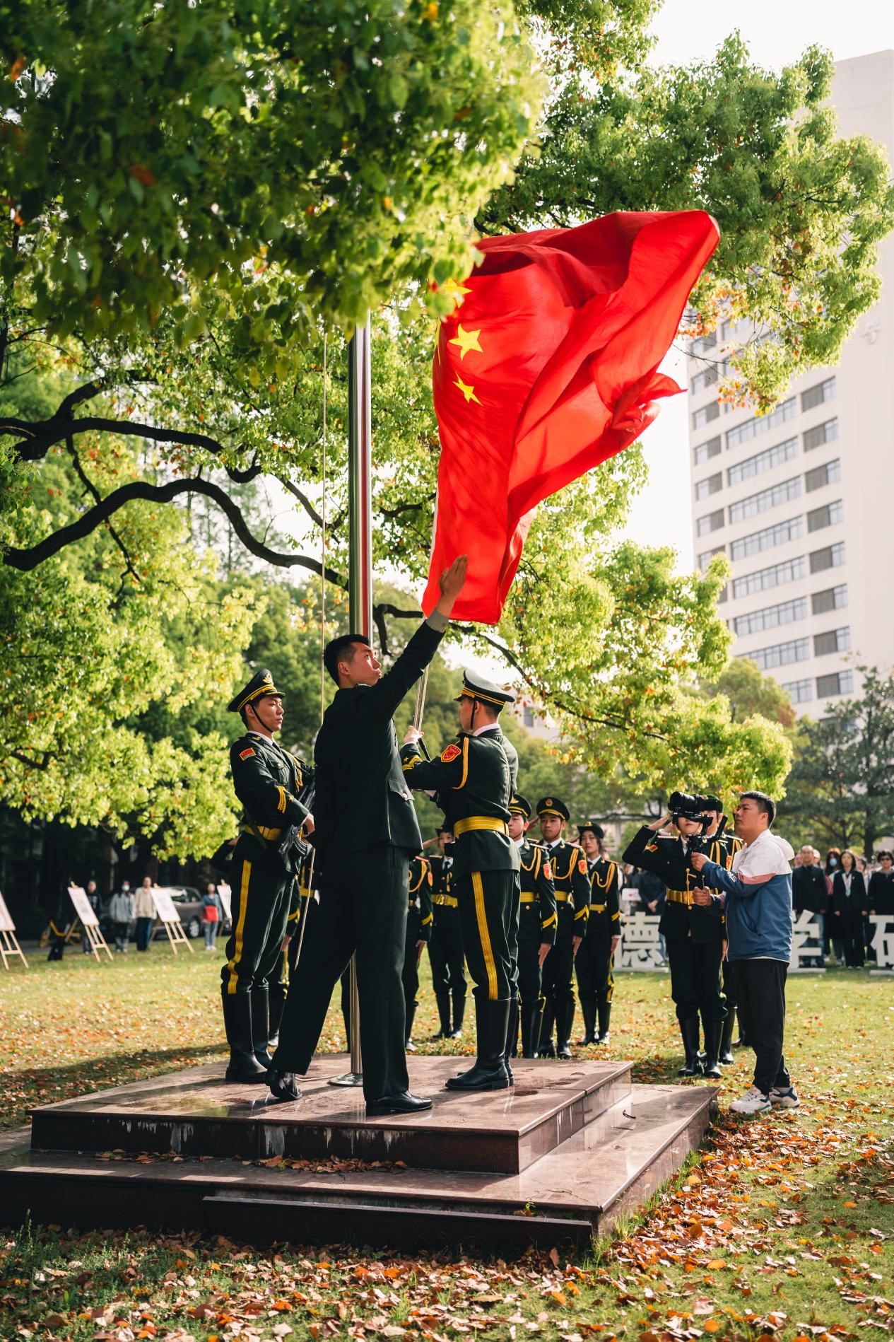 为进一步弘扬爱国主义精神,厚植爱国主义情怀,增强全民国家安全观,永利娱乐场 国旗护卫队党支部以全民国家安全教育日为契机,以总体国家安全观为指导,于4月12日举行“增强全民国家安全观,厚植爱国主义情怀”主题升旗仪式。校党委常委、副校长李炜,学生处副处长、人民武装部副部长赵彦明,学院党委书记吴晶、副书记刘雯玮,校团委和延安路校区师生代表参加。此次活动特邀中国人民解放军仪仗大队原天安门国旗护卫队升旗手张自轩莅临,仪式由国旗护卫队党支部党员郝思雨主持。