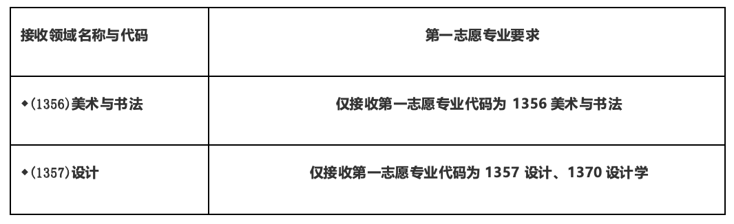 根据教育部相关文件要求及学校《东华大学2026年硕士研究生招生复试与录取工作办法》、《东华大学2026年非全日制硕士研究生招生调剂工作办法》等文件精神,我校拟接受非全日制MFA专业学位硕士调剂。凡符合报考要求(具有国家承认的大学本科毕业学历的人员,且研究生考试报名确认截止日期前须取得国家承认的本科毕业证书;或已获硕士、博士学历或学位的人员),初试成绩(总分及单科)须达到2026全国硕士研究生招生考试的艺术类初试成绩基本要求(A类地区),且第一志愿报考专业符合以下要求的人员,可提交调剂申请。